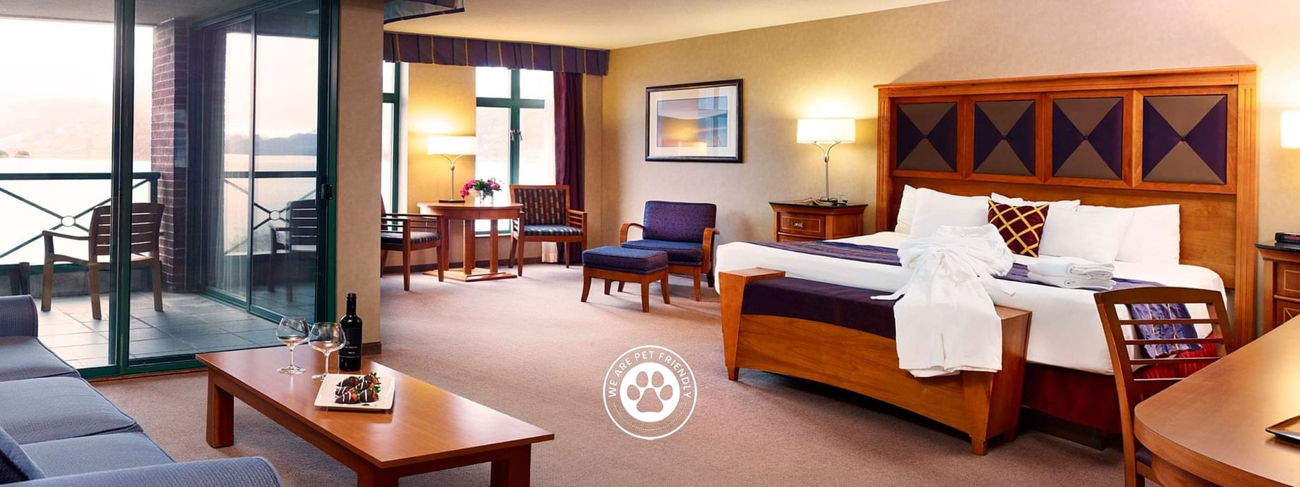 Deluxe accommodation on the top floor of the West Tower with views overlooking Harrison Lake. This room features a queen murphy bed, flat screen TV, fridge, fluffy duvets and bathrobes, makes for a pampered getaway. Need to stay connected, this room also features high speed internet. The West Tower is popular for it’s convenience to hotel facilities including the pools, spa and the Copper Room.